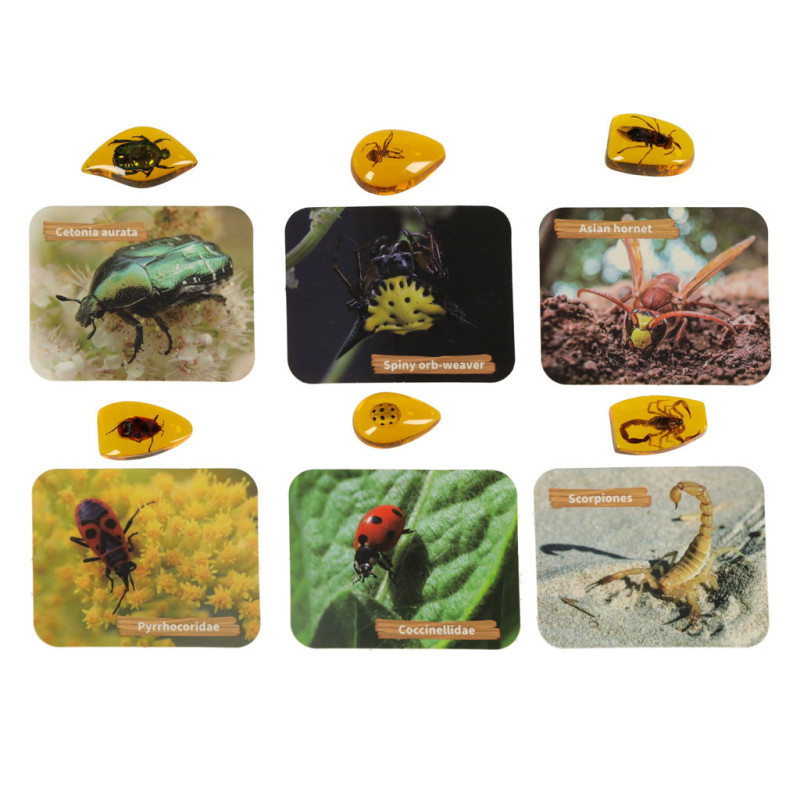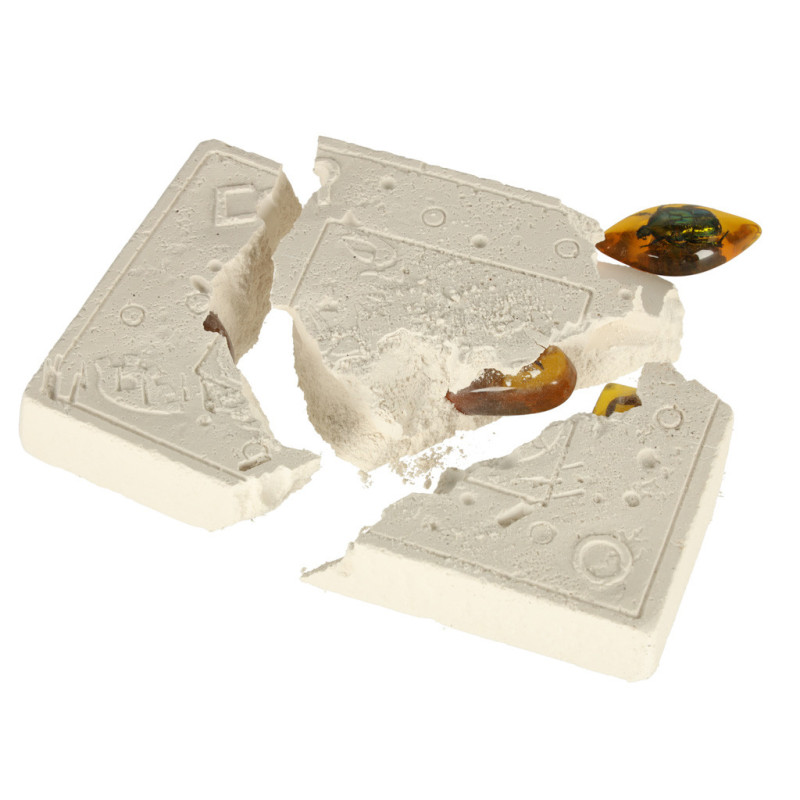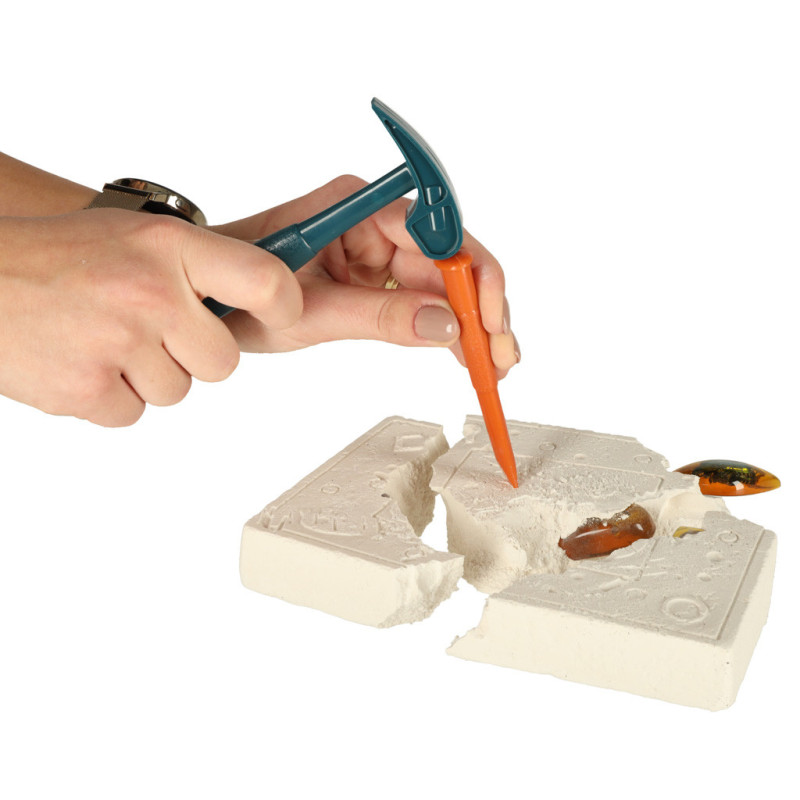Vedecká súprava pre deti je vzdelávacia hračka, ktorá umožňuje deťom objavovať fascinujúci svet hmyzu. Pomocou kladivka a dláta môžu z gipsového bloku vyťažiť drobné hmyzie exempláre uložené v imitáciách jantáru. Ideálna hra na malého paleontológa alebo bádateľa!