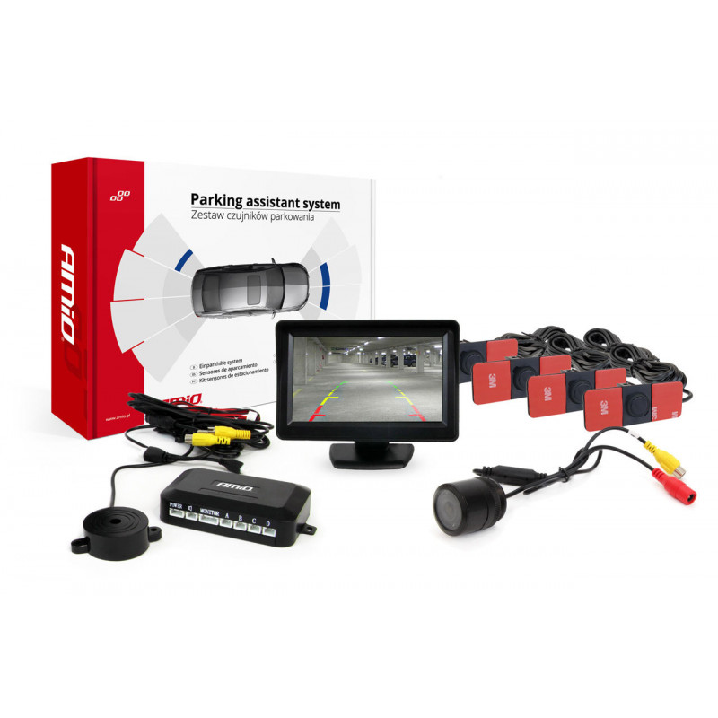 Asistenty parkovania TFT01 4,3 s kamerou HD-301-IR 4-senzorové čierne vnútorné