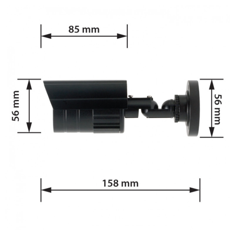 V zapnutom stave so svetelným senzorom svieti červené LED, a to zabezpečuje dokonalú ilúziu nainštalovaného fungujúceho systému.Profesionálny tvar a vzhľad zabezpečuje úplný dojem funkčnej bezpečnostnej kamery. Napájanie zabezpečujú 2 ks tužkových batérií rozmeru AA, ktoré nie sú súčasťou balenia. V balení nájdete hmoždinky a skrutky pomocou, ktorých kameru jednoducho upevníte na požadované miesto, nevyžaduje kabeláž. Nedá sa napojiť na bezpečnostný video systém! Vhodná pre použitie v interiéri ako aj exteriéri. Pri montáži v exteriéri s ohľadom na, čo najdlhšiu životnosť, dbajte na to, aby nebola priamo vystavená poveternostným vplyvom, vlhkosti a slnečnému žiareniu!