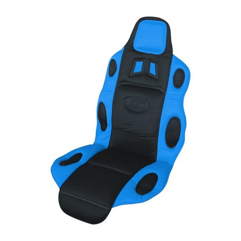 Univerzálny poťah sedadla s atraktívnym Race dizajnom. Pre všetky typy automobilov. Pripevnenie k sedadlu pomocou gumových popruhov. Farebné prevedenie čierno-modré.