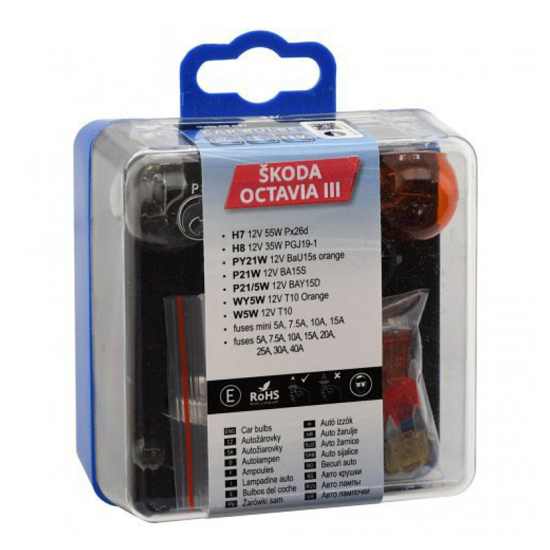 Využite ponúkanú pomoc prostredníctvom tejto plastovej krabičky plnej užitočných žiaroviek a poistiek pre vozidlo Škoda Octavia III H7+H8. V prípade rozbitia či prasknutia žiarovky môžete ľahko tento problém opraviť len za niekoľko minút. Len niekoľko okamihov a trochu umu vás delí od vrátenia automobilu späť na cestu. Náhradné diely môžete mať vždy po ruke vďaka tejto súprave. Súprava obsahuje naozaj širokú paletu potrebného príslušenstva. Plastový obal zaistí maximálne bezpečie prevážaných komponentov. Vďaka tomu sa nemusíte báť o zničenie jemných drôtikov autožiaroviek.