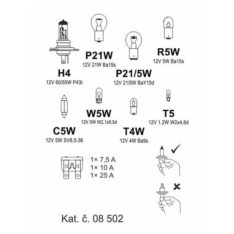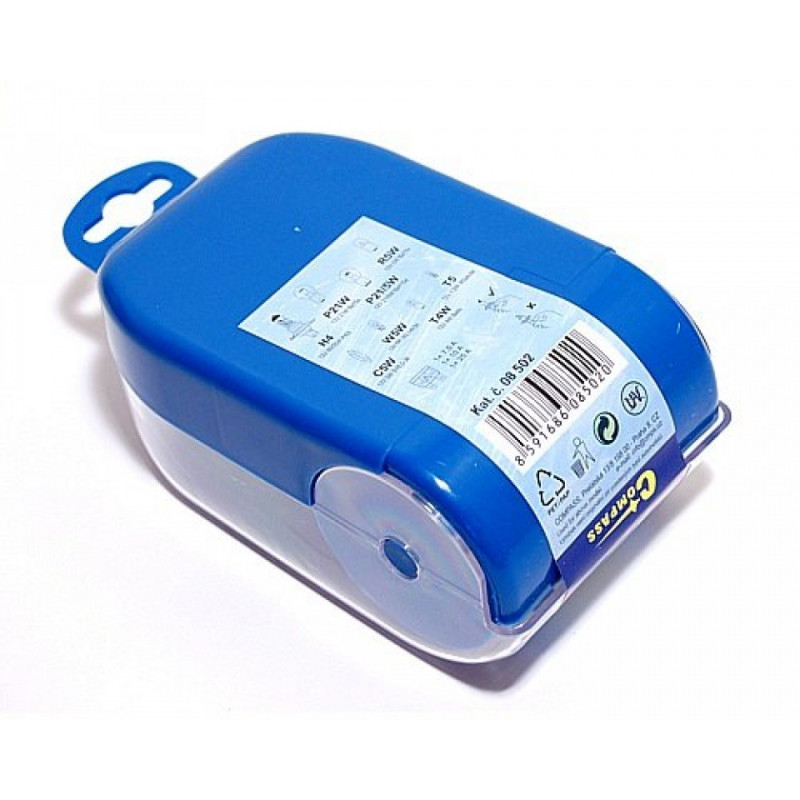 Plastová krabička náhradných autožiaroviek a poistiek, homologizácia E.