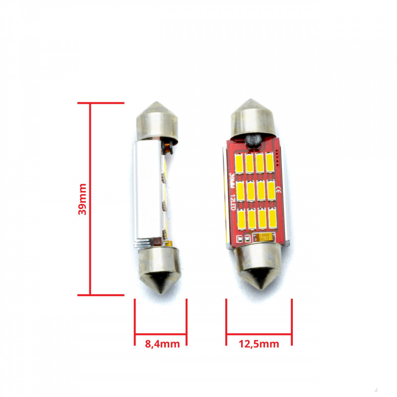 C10W LED žiarovka 39mm 12 SMD 4014 5000k canbus