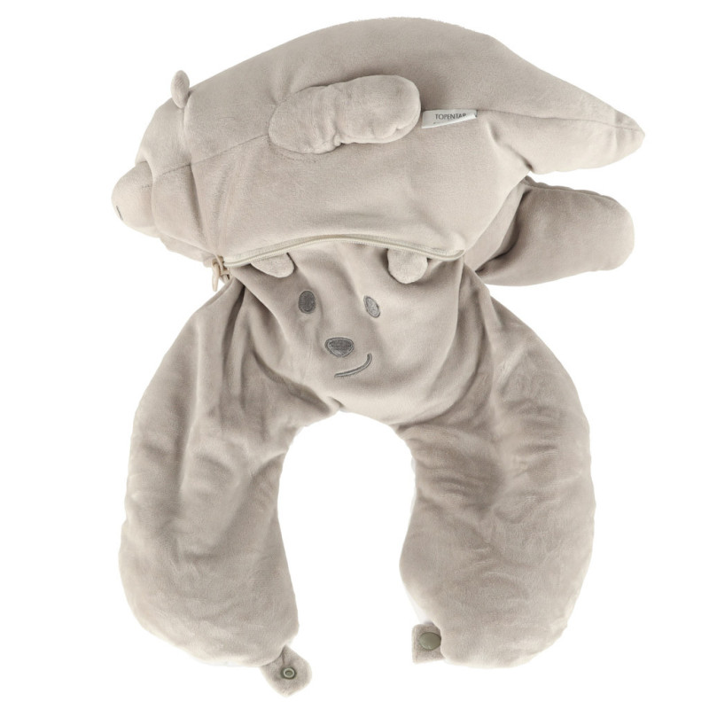 - Dva v jednom - maskot a vankúš - roztomilý medvedík, ktorý sa po otočení stane pohodlným cestovným vankúšom v tvare croissantu. Ideálny na každodenné použitie a cestovanie