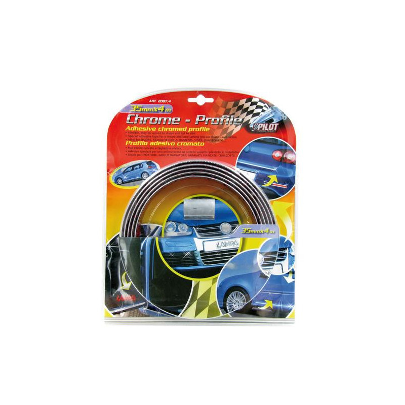 Chrómová plochá lišta na nalepenie. Gumová ozdobná lišta s pochrómovanou povrchovou úpravou. Jednoducho sa skracuje na požadovanú dĺžku. Zabezpečí skvelý vzhľad pre vzduchové grily, okraje dverí, mriežky chladičov Uvedená cena je za 4 metre.