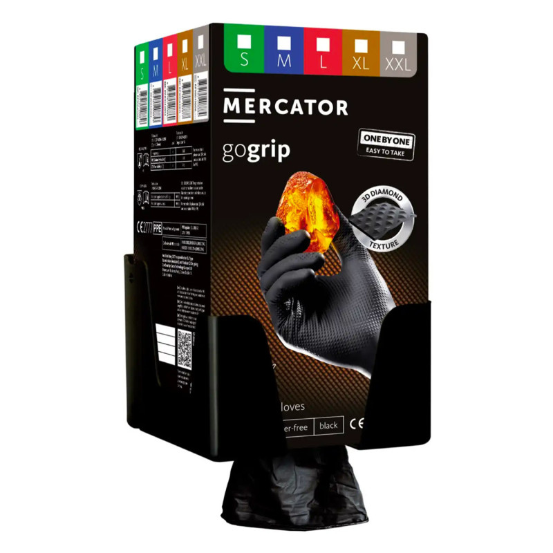 Čierny držiak na GoGrip rukavice MERCATOR je praktický nástenný držiak navrhnutý na pohodlné skladovanie nitrilových rukavíc GoGrip. Tento držiak umožňuje efektívne uskladnenie rukavíc v dielňach, garážach alebo priemyselných prevádzkach a zabezpečuje ich rýchly prístup. Kompatibilný je so všetkými veľkosťami a farbami GoGrip rukavíc, čo ho robí flexibilným a univerzálnym riešením pre každé pracovisko.