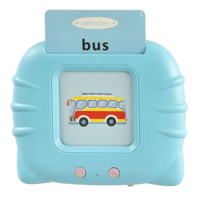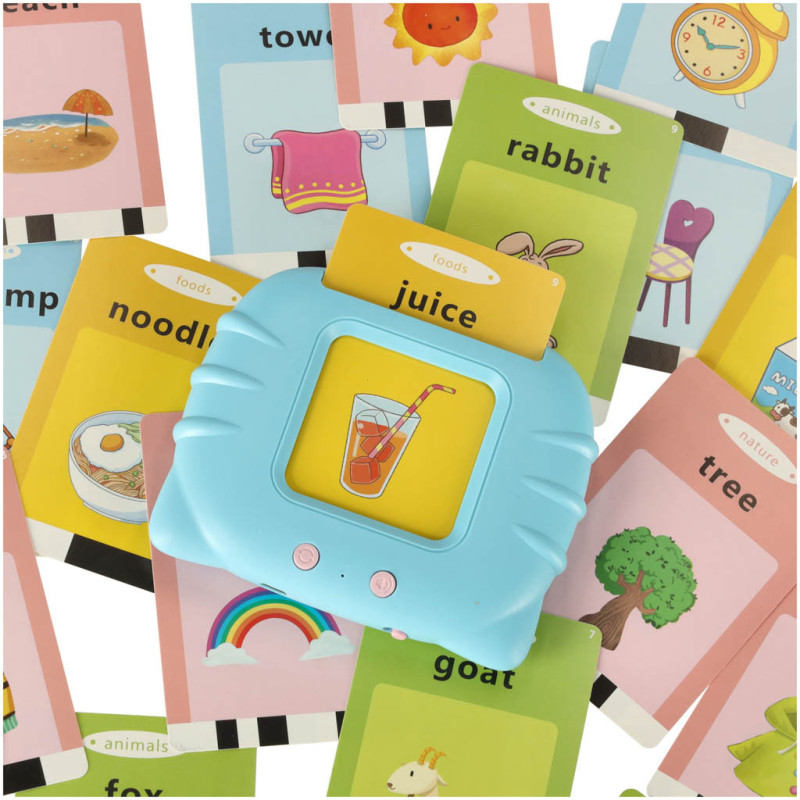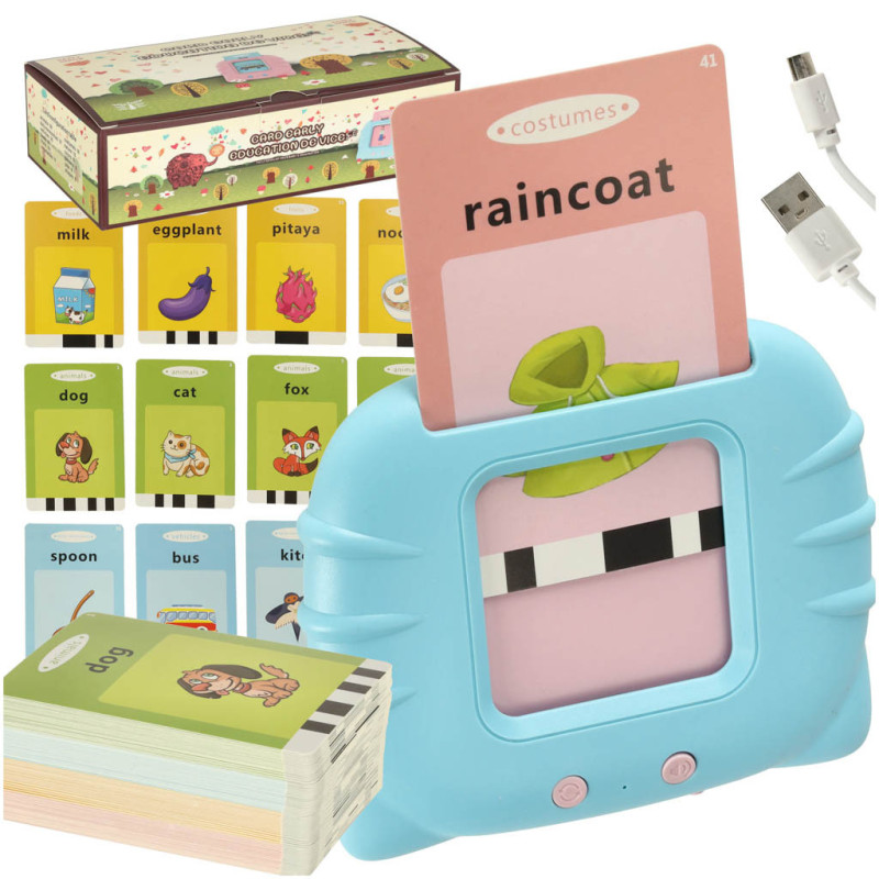 Stačí vložiť kartu do čítačky – zariadenie okamžite prehrá výslovnosť slovíčka. Pomocou pravého tlačidla si dieťa môže upraviť hlasitosť, ľavým tlačidlom si prehrá výslovnosť znova.