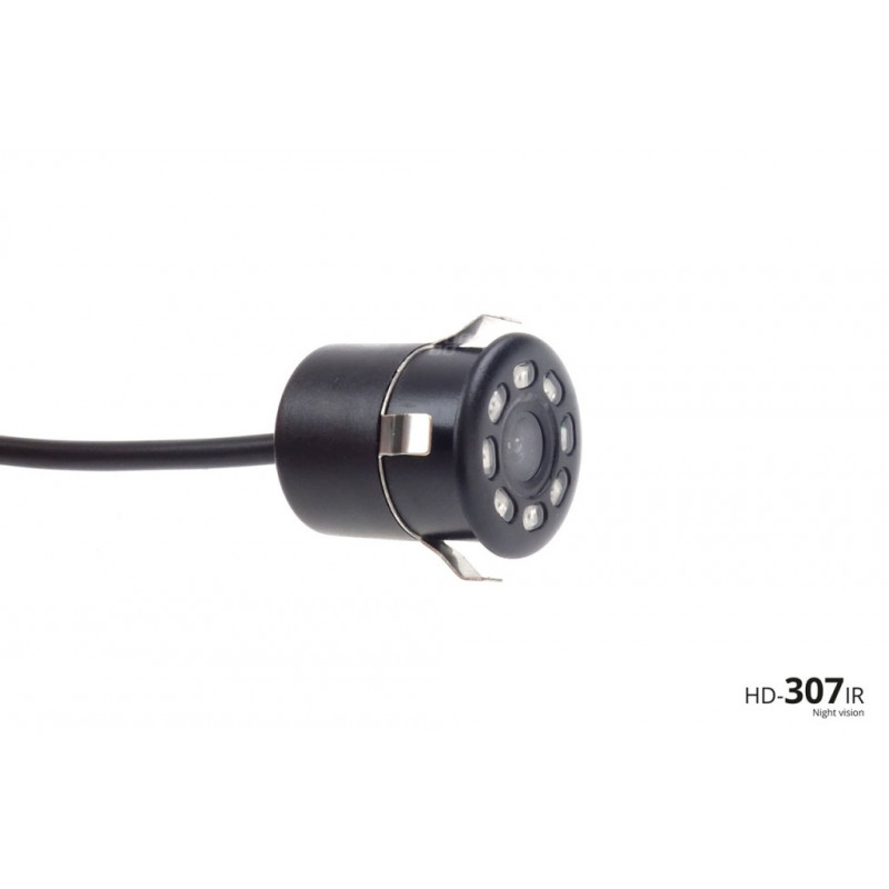 Kamera HD-307-IR s funkciou "Nočné videnie". Vysoké rozlíšenie HD 720p. Kamera, ktorá vyzerá ako štandardný parkovací senzor. Priemer uchytenia Ø18mm, vonkajší priemer Ø22mm. Bude sa perfektne hodiť do každého vozidla, bez toho aby došlo k zničeniu štylistické línie. Ďalšie infračervené LED diódy poskytujú v noci veľmi dobrý výhľad na okolitý obraz na zle osvetlených miestach.