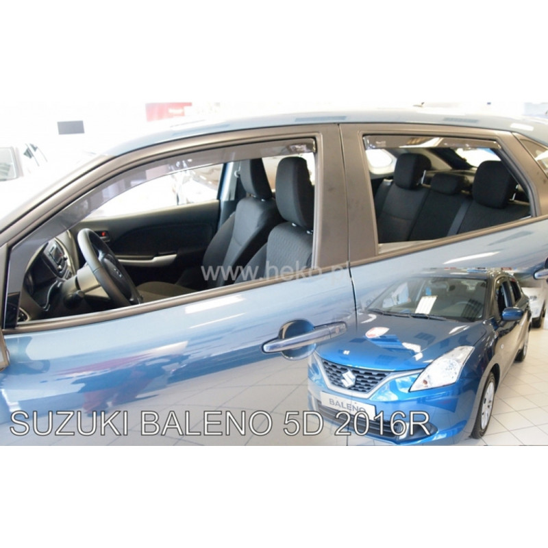 Deflektory pre SUZUKI Baleno 5D (+zadné) (2016->) na mieru na okna automobilu. Deflektory sú nazývane aj ofuky okien alebo protiprievanové clony.