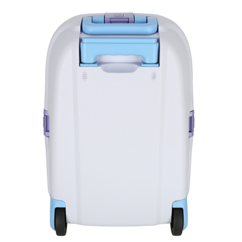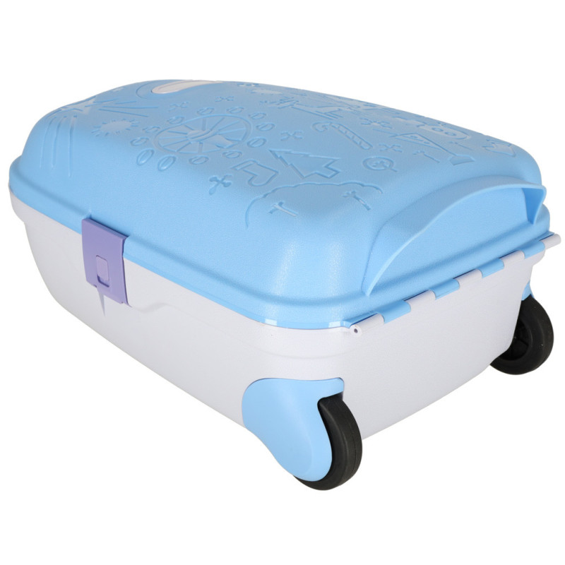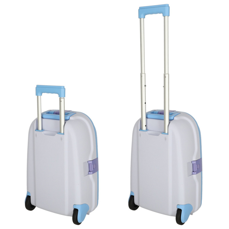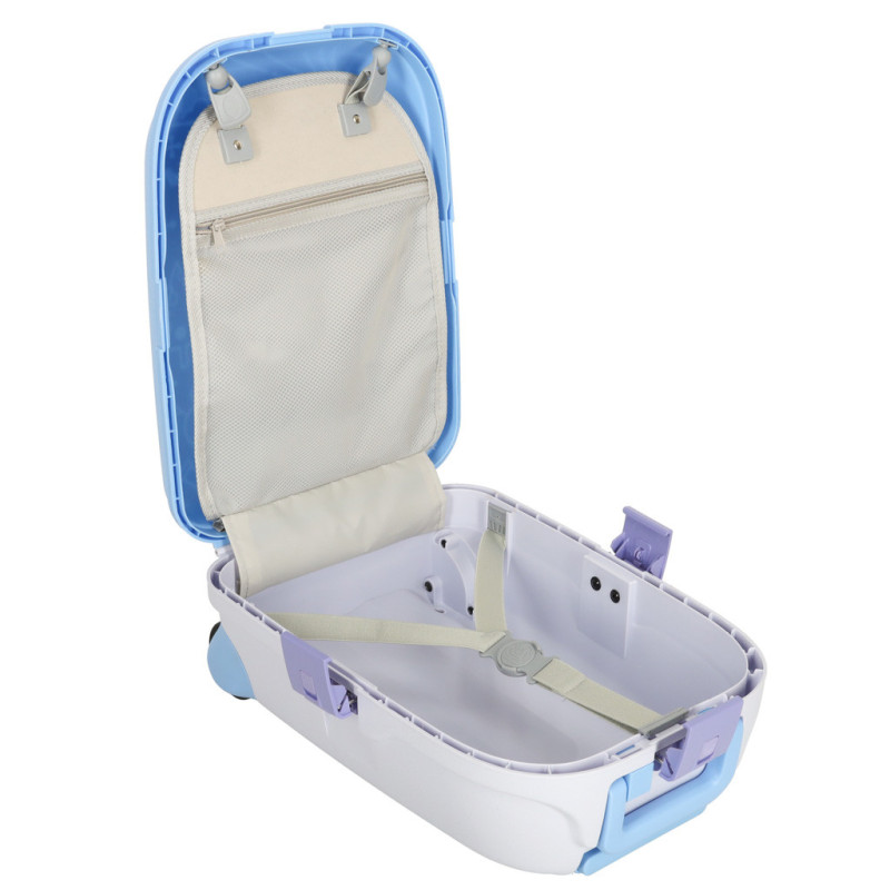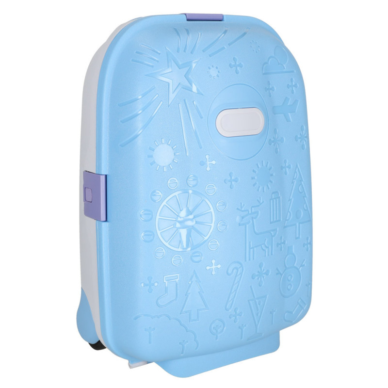 Modrý detský kufrík je skvelým spoločníkom na každé dobrodružstvo! Má výsuvnú rukoväť prispôsobenú výške dieťaťa a ľahkú konštrukciu, vďaka ktorej ho zvládnu ovládať aj tí najmenší. Bezpečné uzatváranie na tri klipsy zaručí, že veci zostanú počas cesty na svojom mieste.