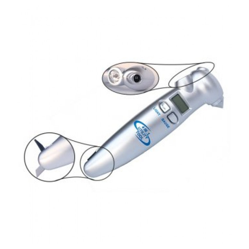 Pneumerač 4v1 s digitálnym displejom. digitálny pneumerač orezávadlo svetlo kladívko