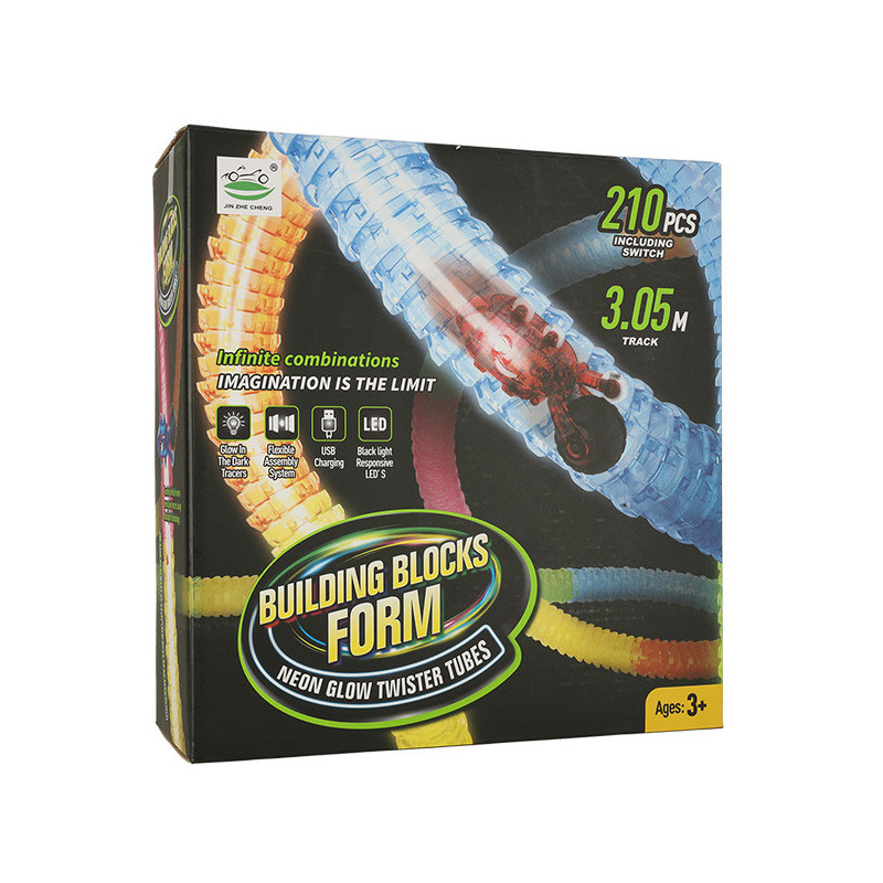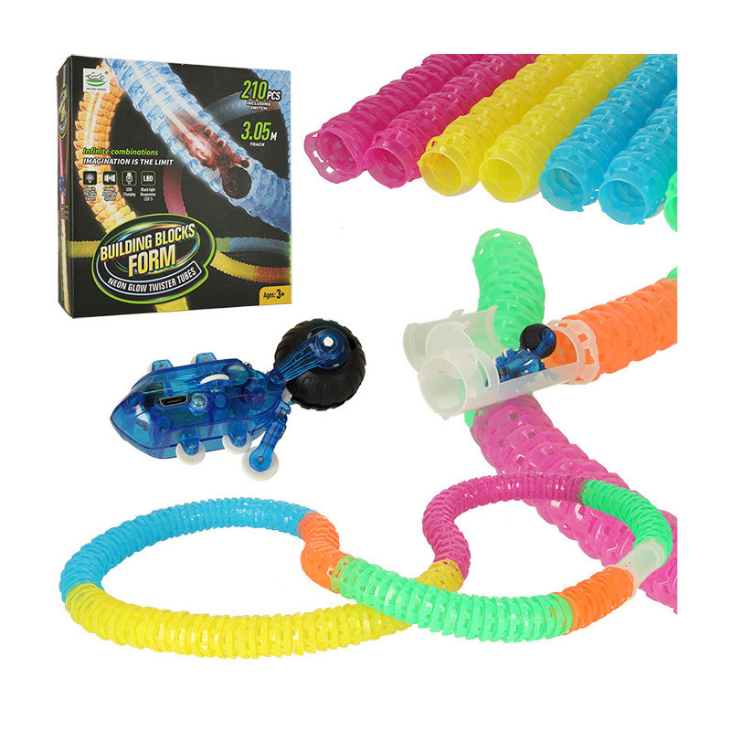 Dlhá rúrková trať s rýchlym vozidlom 210 prvkov.