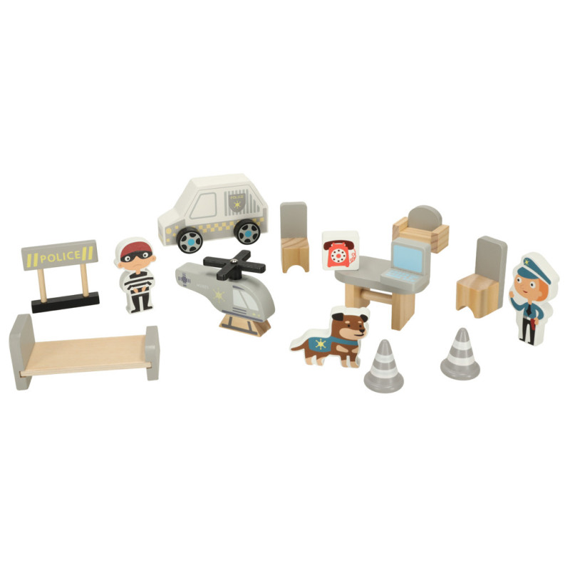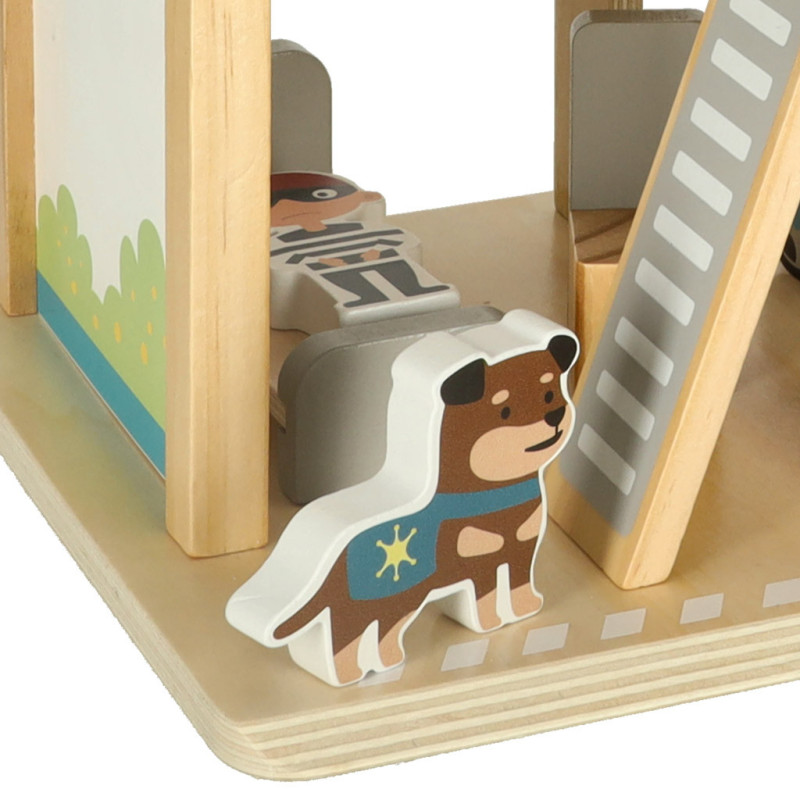 Drevená policajná stanica je ideálnou hračkou pre malých milovníkov poriadku a bezpečnosti! Obsahuje všetko potrebné na vytvorenie množstva herných scenárov — od zatýkania zlodejov až po vzlety vrtuľníka na strešnej heliporte.