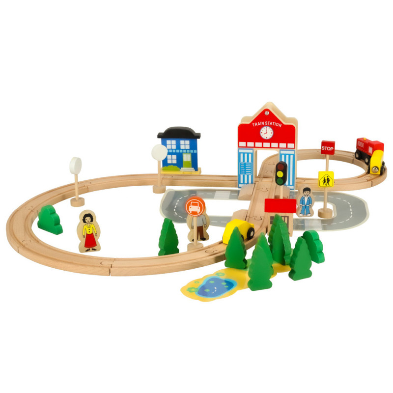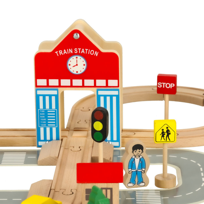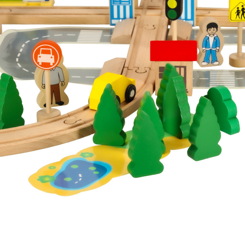 Drevená vláčiková dráha s vláčikom, autíčkom a mestečkom je ideálnou hračkou pre deti od 3 rokov. Súprava obsahuje až 50 rôznych prvkov, vďaka ktorým si dieťa môže vytvoriť vlastný svet plný príbehov, dobrodružstiev a fantázie.