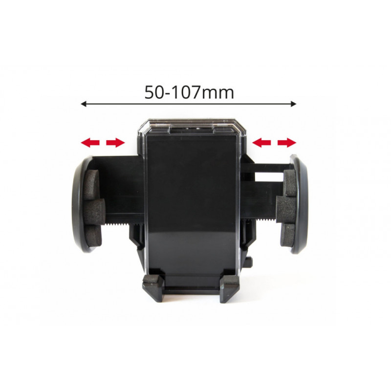 Nastaviteľný držiak telefónu v rozmedzí od 50 do 107 mm.