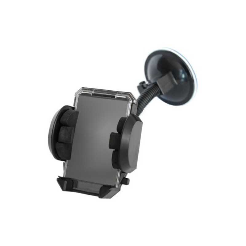 Univerzálny držiak do auta na mobilný telefón, PDA alebo GPS Možnosť uchytiť do mriežky ventilácie alebo nalepiť na sklo pomocou prísavky Max. roztiahnutie: 120 mm Min. stiahnutie: 38 mm Výška dr...