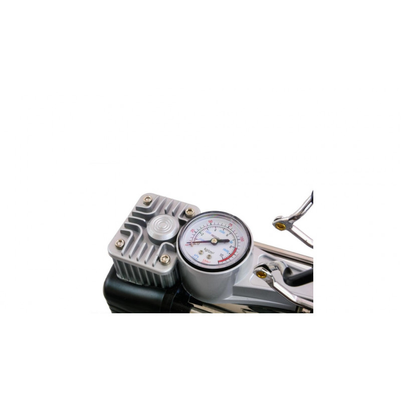 Prenosný a všestranný 12-voltový kompresor s manometrom, štandardným ventilom, dlhým prívodným káblom zapaľovača 12 V do auta. Ideálne pre pneumatiky automobilov a bicykle, športové lopty, nafukovačky a nafukovacie hračky. Jednoduché pripojenie je možné prostredníctvom zástrčky zapaľovača cigariet, ktorú nájdete v takmer každom automobile. Meranie tlaku na meracom manometri funguje aj pri odpojení kompresora. Ľahko sa používa - jednoducho zapojte do zapaľovača cigariet pre napájanie, nasaďte univerzálny adaptér cez ventil pneumatiky a ste pripravený na nafukovanie.