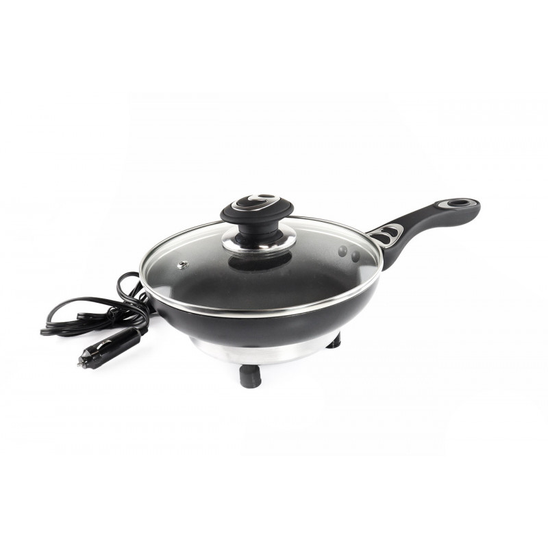 Elektrická panvica poháňaná autozapaľovačom (jednosmerný prúd). Funguje skvele v nákladných autách, nákladných autách, obytných autách, lodiach atď.
