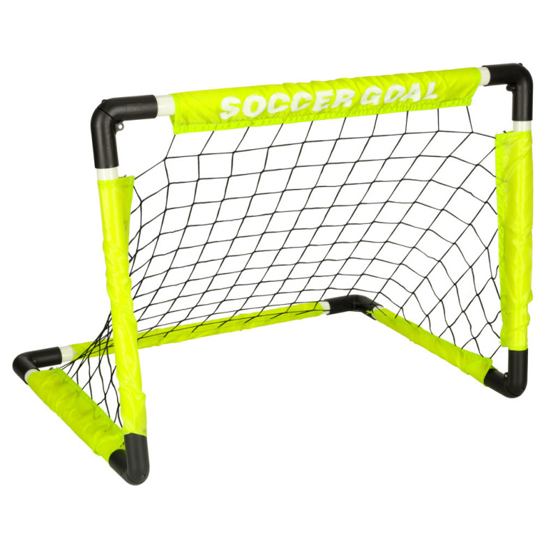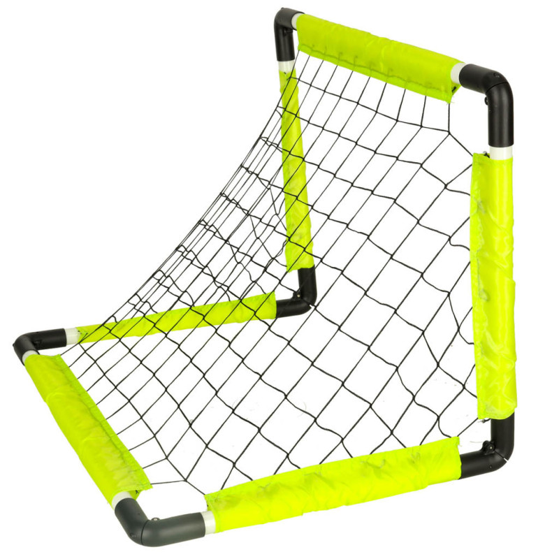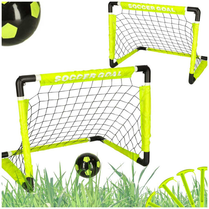 V balení nájdete všetko potrebné na okamžité hranie – lopta, pumpa a plastové kolíky, ktoré zafixujú bránky na mieste a zabránia ich posúvaniu počas hry. Bránky je možné zložiť naplocho bez nutnosti demontáže, vďaka čomu ich jednoducho uskladníte alebo prenesiete.