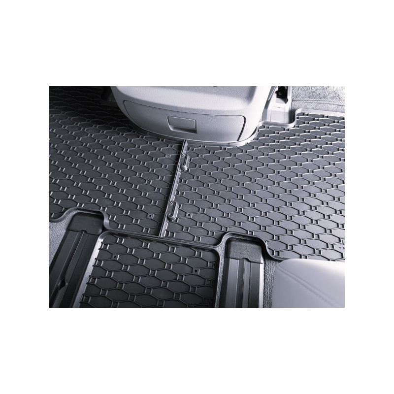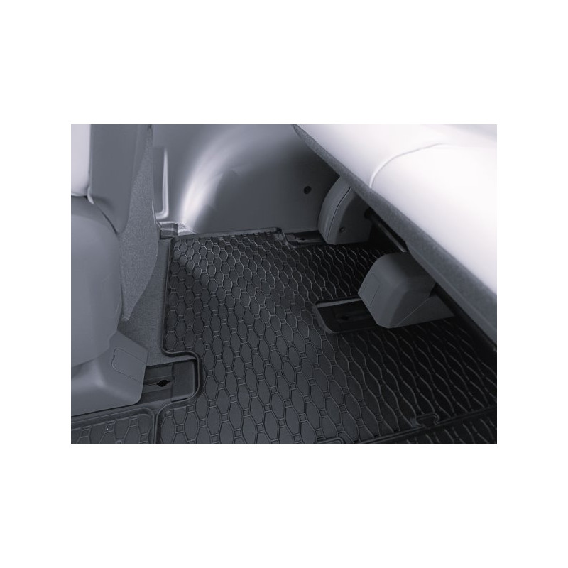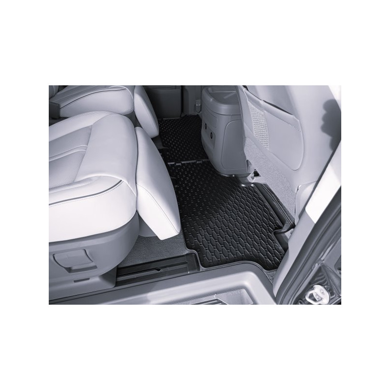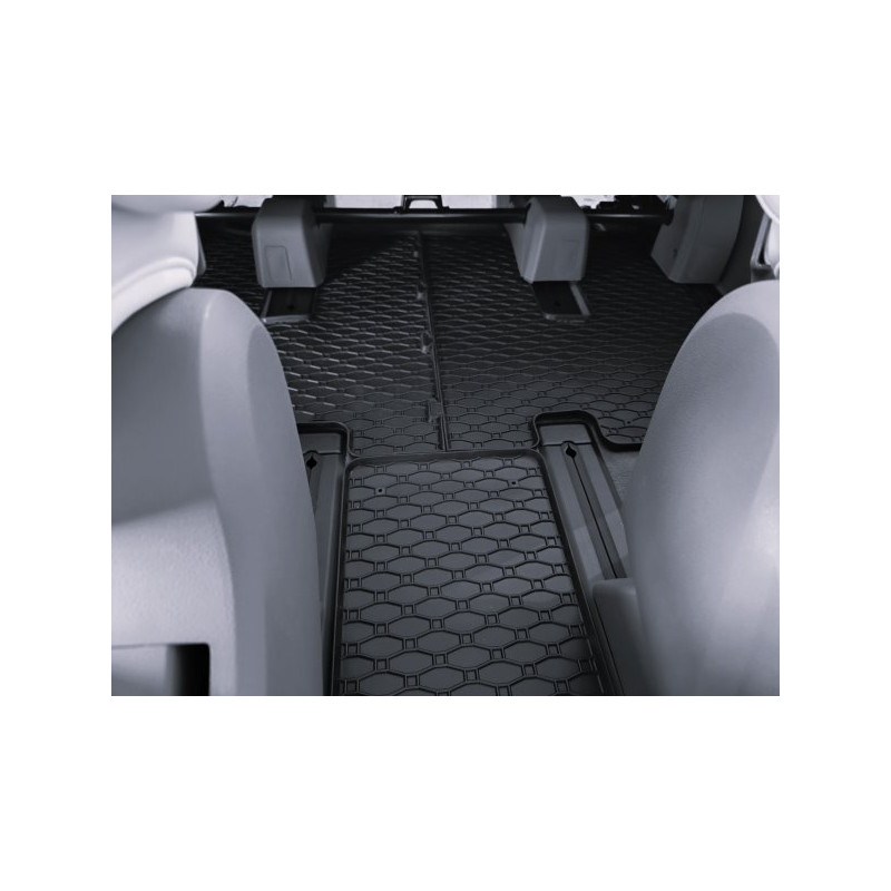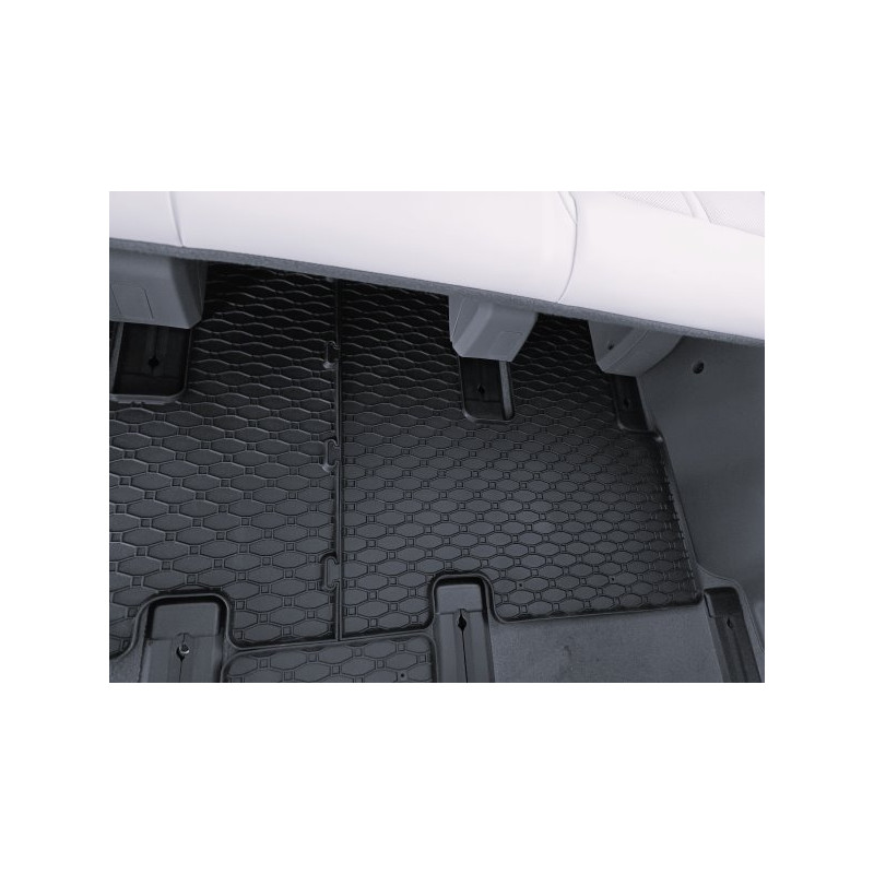 Gumené rohože na mieru pre HYUNDAI HYUNDAI Staria 2.+ 3. rada 7m (2022->). Rohože sú vyrobené presne na mieru interiéru daného vozidla. Lacnejšia náhrada originálnych rohoží.