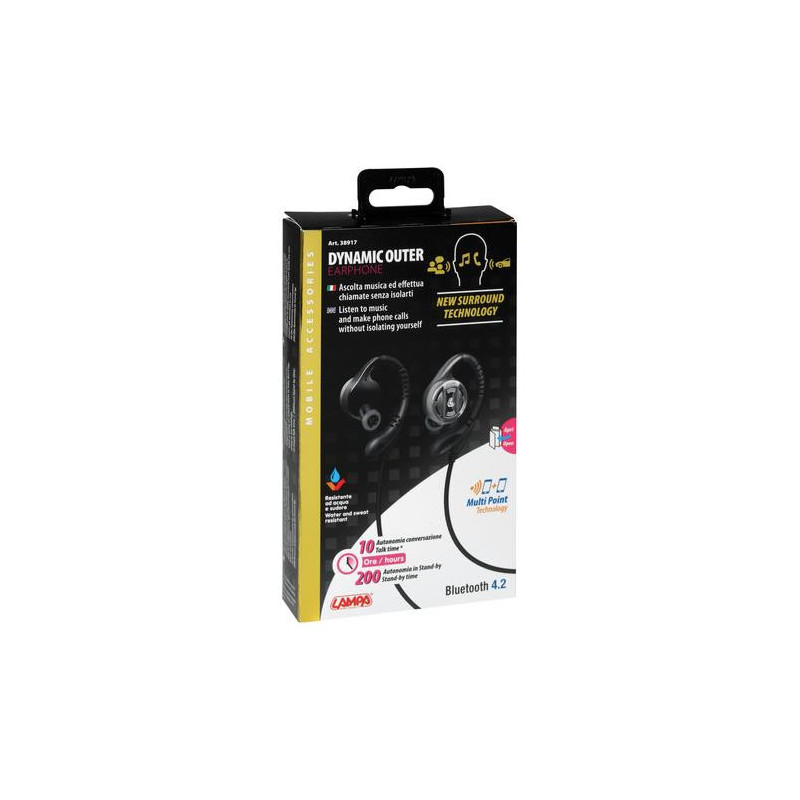 Podporované funkcie: Bluetooth, A2DP, AVRCP, HFP, HSP VONKAJŠIA PLOCHA: slúchadlo zostáva mimo sluchového kanála bez stresu ucha. INTERACTIVE: počúvajte hudbu, telefonujte a súčasne komunikujte s tým, čo vás obklopuje (ľudia, doprava, ...). EXTRÉMNÝ KOMFORT: noste slúchadlá celý deň bez únavy ucha. 360 ° ZVUK: počuť hudbu prichádzajúcu z celého sveta, vyrovnaný pocit, vysoká kvalita.