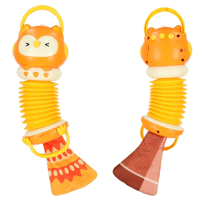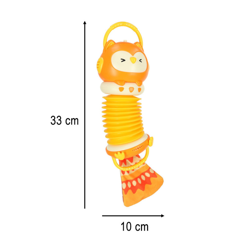 AKORDEÓN HARMÓNIA PRE DETI ORANŽOVÁ SOVA HRAJÚCA LED 30CM