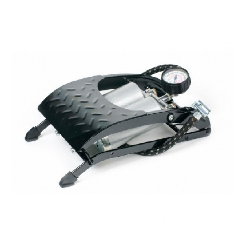 Hustilka nožná dvojpiestová, univerzálne použitie pre osobné automobily a motocykle, súčasťou balenia sú dva adaptéry (pre hustenie lôpt, bicyklov, nafukovacých madracov a pod.).
