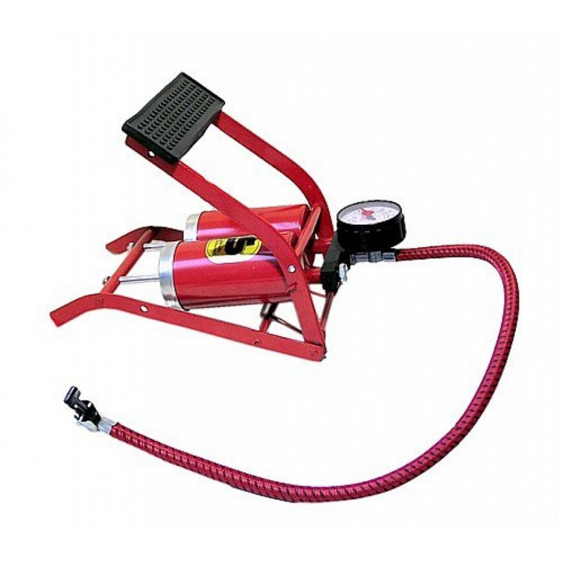 Kovová nožná hustilka s dvoma piestami a s manometrom, určená pre hustenie pneumatík osobných automobilov. Súčasťou balenia sú prídavné adaptéry pre hustenie gumových matracov, lôpt a pod.