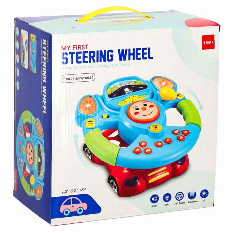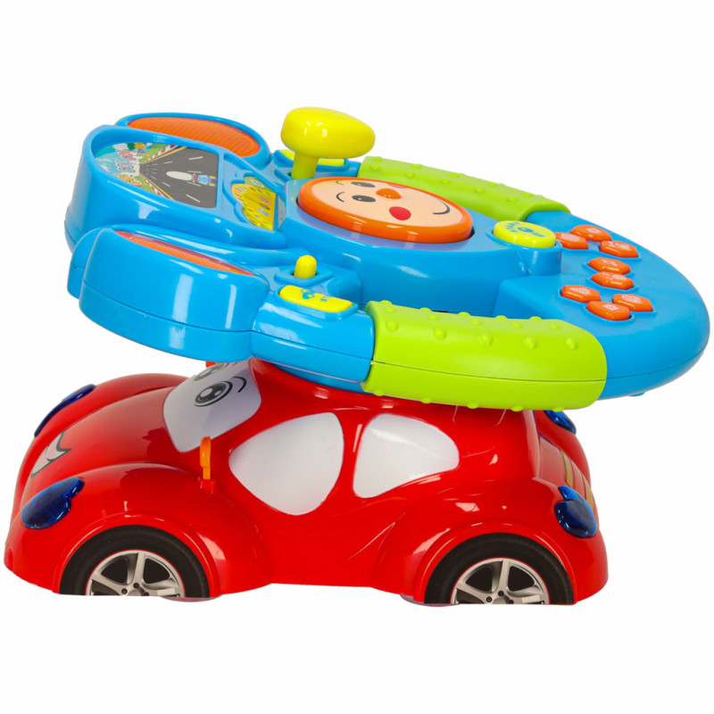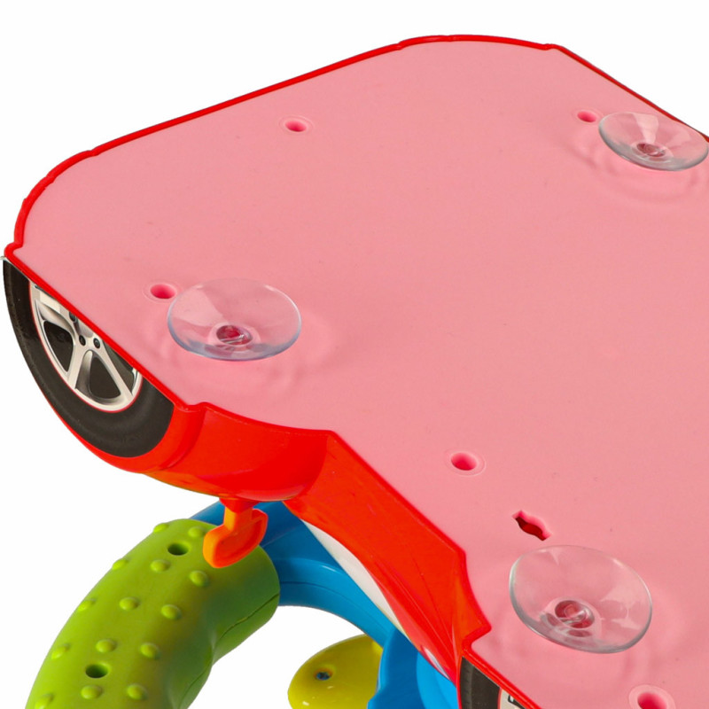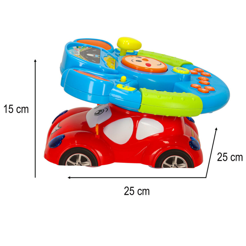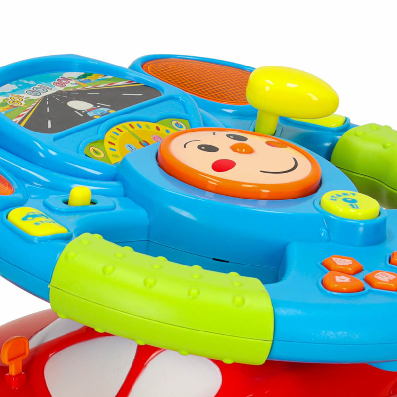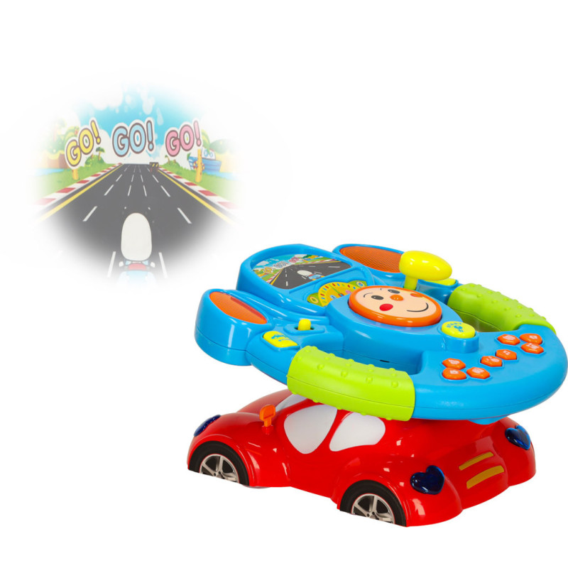 Volant je umiestnený na červenom autíčku s vstavaným projektorom, ktorý premieta obrázok cesty. Vďaka tomu hra dokonale stimuluje predstavivosť dieťaťa a dodáva pocit jazdy.