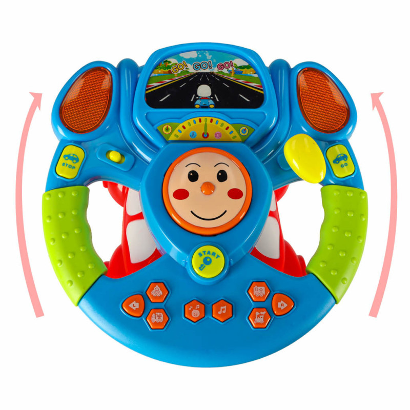 Detský interaktívny volant ponúka malým vodičom bohaté zvukové a svetelné efekty, ktoré spríjemnia každú hru. Každé tlačidlo prehráva realistické zvuky, ako sú sirény sanitky a polície, zvuk vlaku, kamióna, radenie prevodov alebo brzdenie.