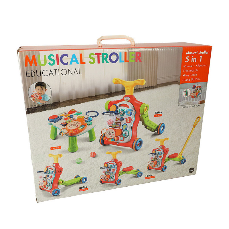 5v1 interaktívna hračka pre deti – chodítko, odrážadlo, skúter, tabuľa a stolík