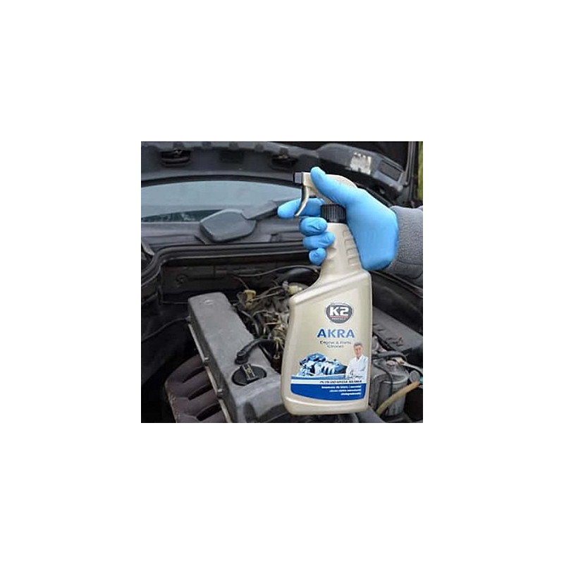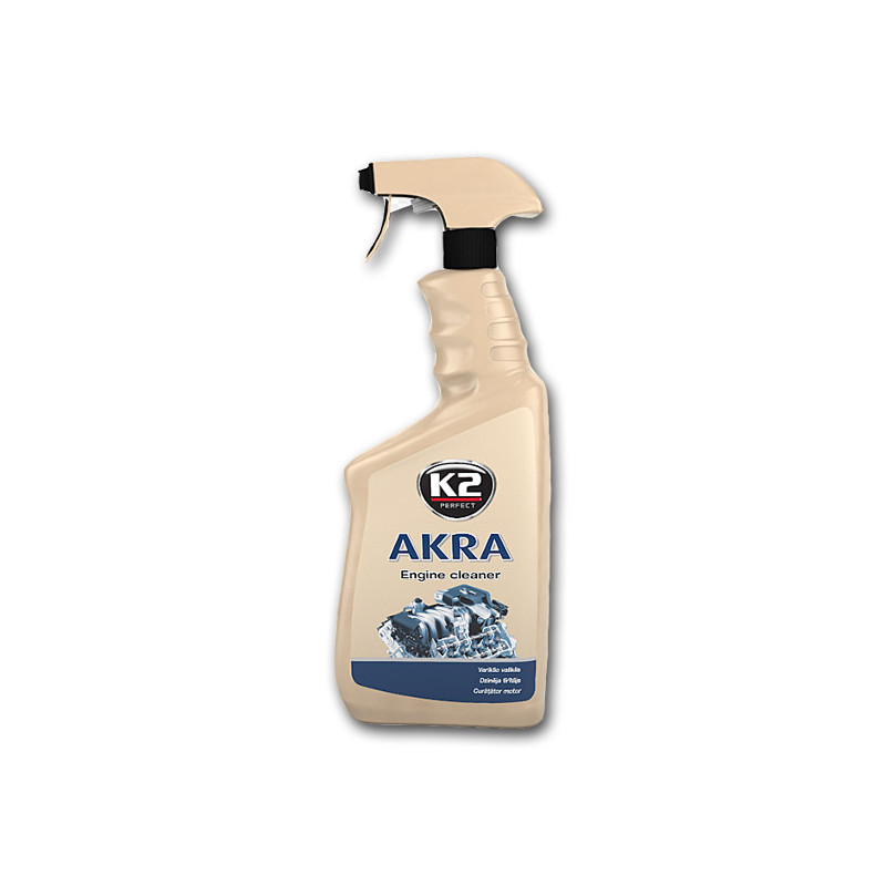 K2 AKRA – profesionálny čistič motorov a silno znečistených častí K2 AKRA je osvedčený čistič motorov, ktorému dôverujú milióny používateľov po celom svete. Je určený na odstraňovanie ťažkých usadenín, zvyškov prevádzkových kvapalín, zaschnutých nečistôt a povrchovej hrdze. Perfektne čistí nielen motory a komponenty vozidiel, ale aj náradie, priemyselné zariadenia a povrchy. Špeciálne vyvinuté zloženie s aktívnymi nanočasticami a inhibítormi korózie účinne rozkladá olej a mastnotu, pričom chráni čistené povrchy a zabezpečuje špičkový výsledok čistenia. K2 AKRA je bezpečný pre plastové, gumové, lakované aj chrómované diely. Neobsahuje rozpúšťadlá ani ropné deriváty a je biologicky odbúrateľný do 28 dní.
