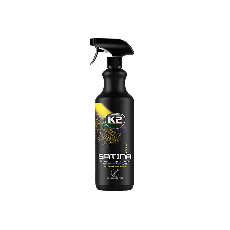 K2 SATINA PRO – saténová starostlivosť o interiér vozidla K2 SATINA PRO predstavuje jemné spojenie dvoch svetov – tam, kde končí lesk a ešte sa nezačína mat, objavuje sa satén s elegantným, decentným a ušľachtilým finišom. Tento interiérový ošetrujúci prípravok je určený na plasty, vinyl a gumu vo vnútri vozidla. Obnovuje pôvodný vzhľad povrchov, jemne ich stmavuje a zvýrazňuje farbu bez mastného filmu alebo prehnaného lesku. Výborne podčiarkuje štruktúru materiálu a zvýrazňuje prirodzenú krásu interiéru.