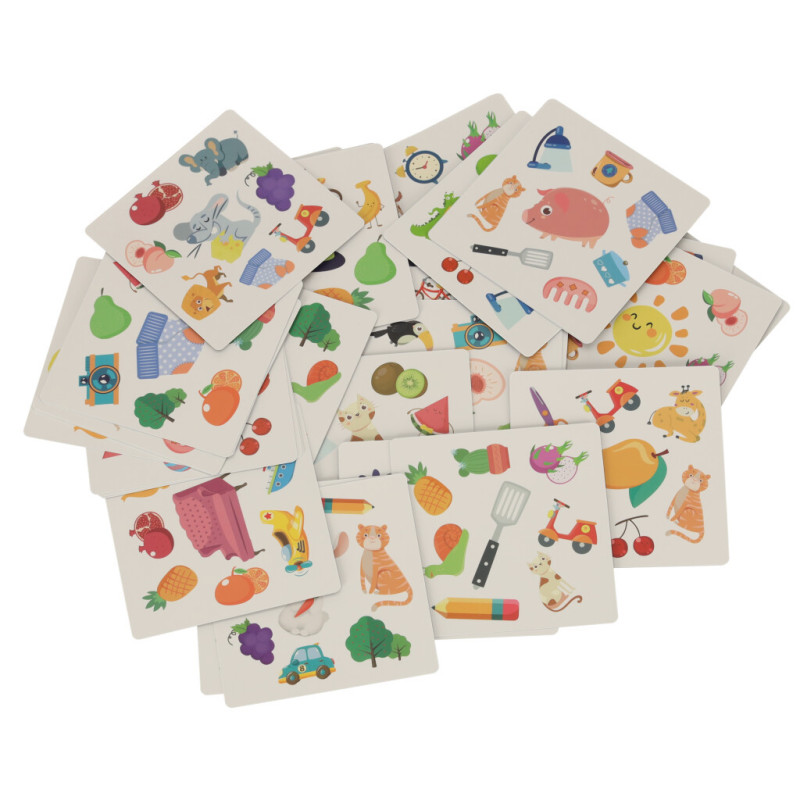 Hoci je v sade až 54 kariet, každá karta vyzerá inak! A čo viac, medzi dvoma kartami je len jeden spoločný obrázok - a vašou úlohou je ho nájsť!