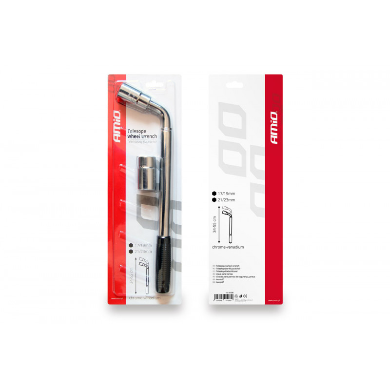 Praktický teleskopický kľúč na kolesá. Kľúč na kolesá je vhodný k ľahkému uťahovaniu a povoľovaniu matíc kolies s rozmermi 17, 19, 21 a 23 mm. Skvelý pomocník pre výmenu kolies, ktorý značne uľahčí prácu. Teleskopický kľúč na kolesá s variabilnou dĺžkou 34-55 cm a veľkou protišmykovou rukoväťou. Veľkosť: 17/19/21/23 mm.