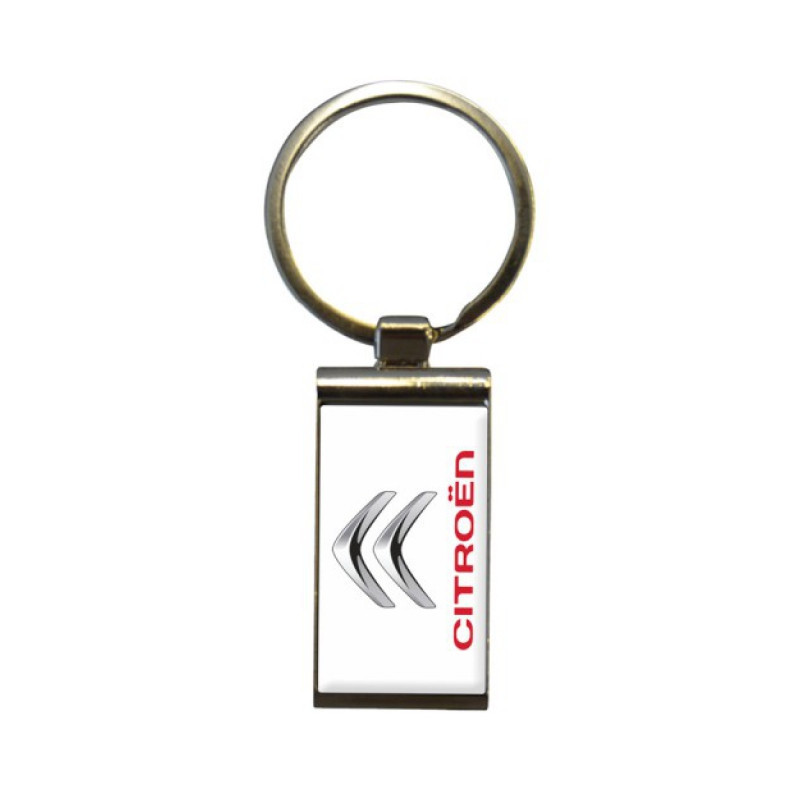Kovová kľúčenka so živicovou nálepkou s logom auta.