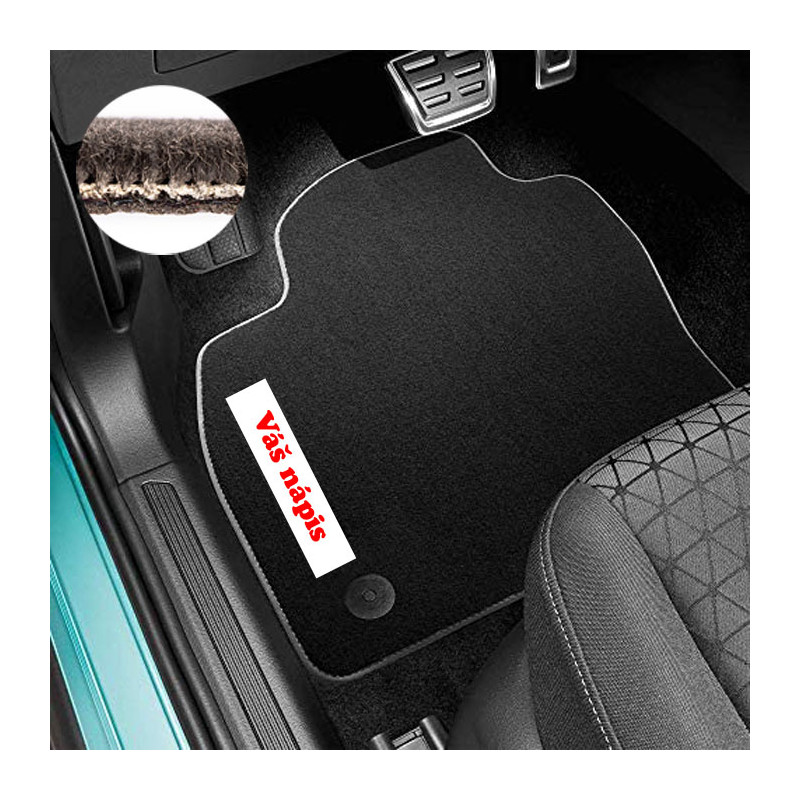 Hustota vlasu gramáž: 2100g/m2 a výška vlasu 4,9mm. Dvojité spevnenie nášlapu vodičovho koberca. Spodná strana spevnená gumovým povrchom.
