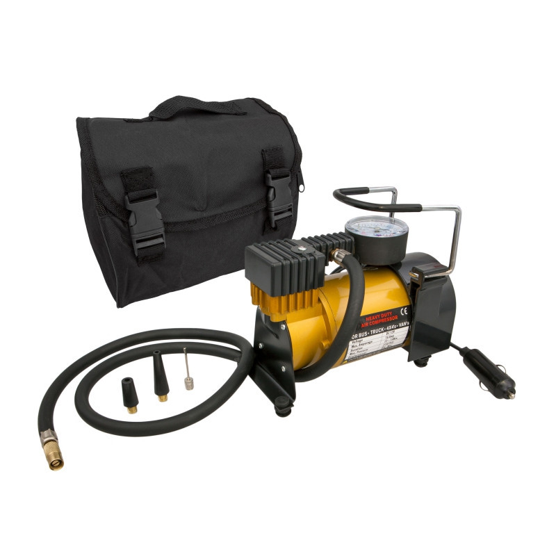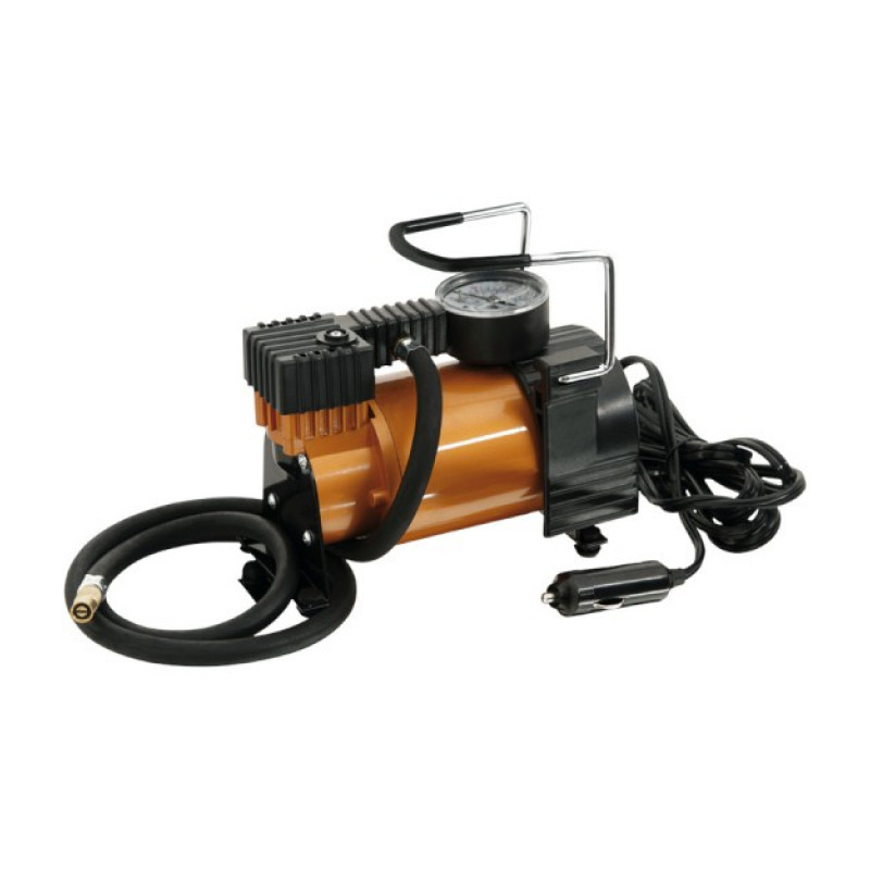 Vzduchový kompresor s meračom tlaku Napájacie napätie: 12V DC / 16A Výtlak: Max. 35L/Min. Vysoký výkon: pre pohodlné nahustenie pneumatiky stačia 2 - 3 minúty Používa sa zapojením zástrčky kompre...
