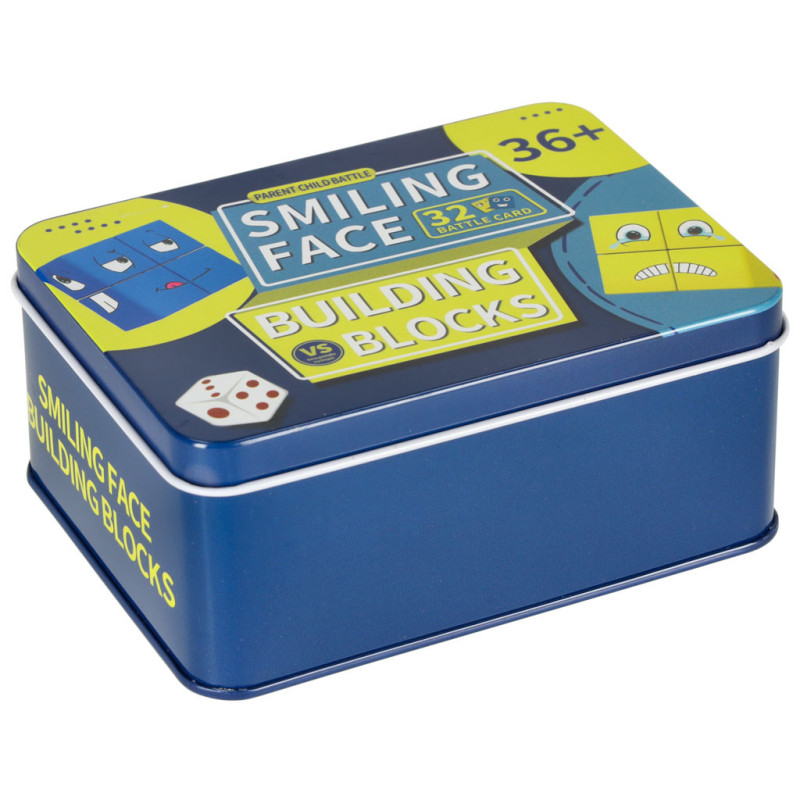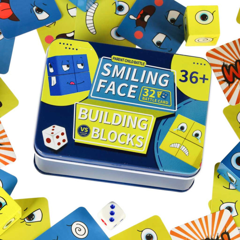 Vyžrebuj si jednu z kariet s vyobrazeným výrazom tváre a v čo najkratšom čase poskladaj rovnaký výraz pomocou drevených kociek. Farba karty zodpovedá farbe kociek, ktoré máš použiť. Znie to jednoducho? Nenechaj sa oklamať – bude to výzva!