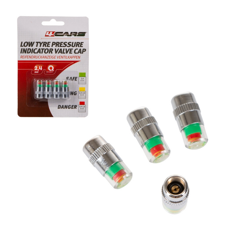 Tieto kryty ventilov sú užitočnou pomôckou pre vodičov, ktorí nemajú možnosť zistiť prostredníctvom dopravného prostriedku tlak v pneumatike. Ventily sú použiteľné nie len na pneumatiky auta, ale aj motorky či bicykla. Vďaka trojfarebnej škále získate aktuálny prehľad o stave tlaku pneumatiky.
