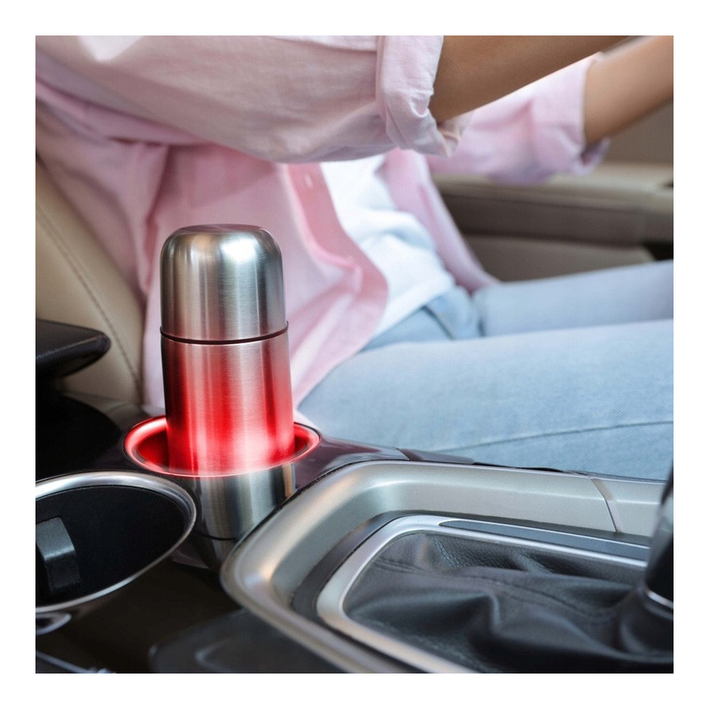 Jednoduché použitie: Podstavec sa jednoducho vkladá do existujúceho držiaka na nápoje v aute a je kompatibilný s väčšinou štandardných držiakov. LED osvetlenie sa aktivuje automaticky, keď umiestnite pohár alebo fľašu na podstavec.