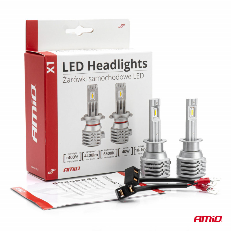 LED žiarovky H1 AMiO série X1 sa vyznačujú veľmi vysokou kvalitou. Navrhovaná zostava vyžaruje jasnejšie a koncentrovanejšie svetlo, čo umožňuje lepšiu viditeľnosť vozovky v obmedzených svetelných podmienkach, ako je súmrak, hmla alebo dážď. Svetelné zdroje vyrobené technológiou CSP sú efektívnejšie v procese premeny elektriny na viditeľné svetlo v porovnaní s tradičnými halogénovými žiarovkami. LED žiarovky sú odolnejšie voči nárazom a vibráciám, čo znamená, že majú dlhšiu životnosť ako halogénové žiarovky.
