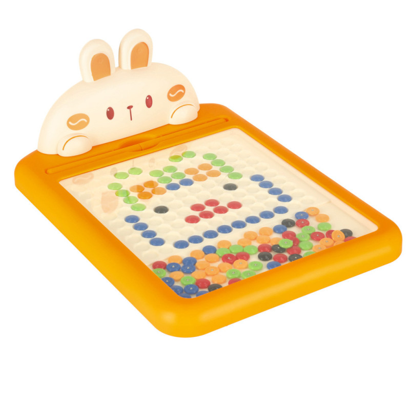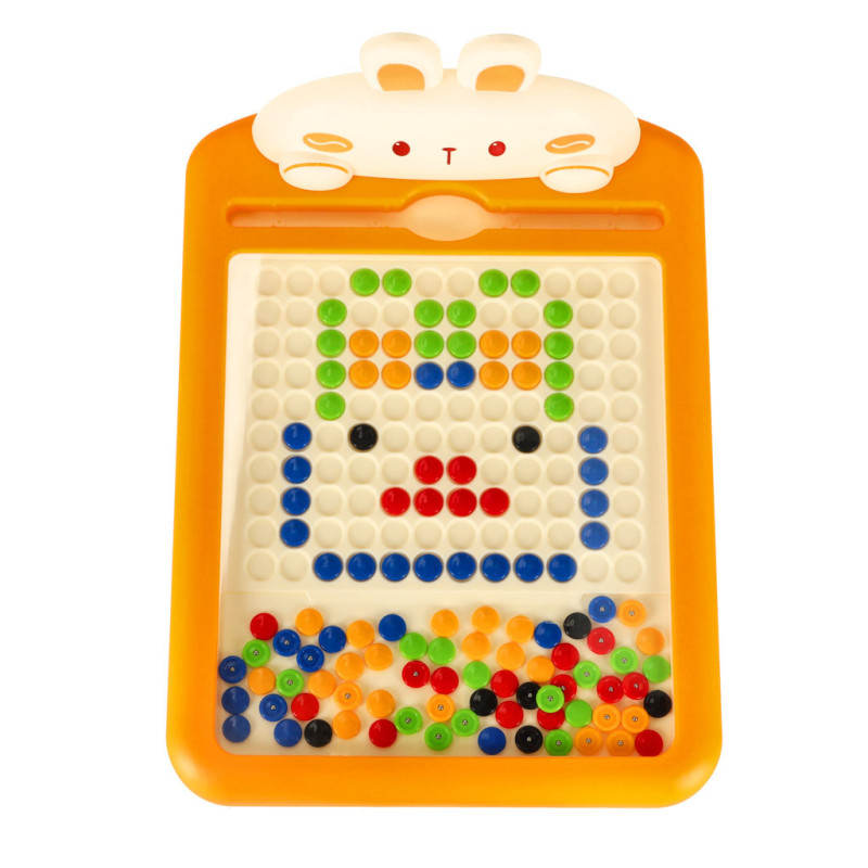 Magnetická tabuľa má farebné gombíky, ktoré možno premiestňovať pomocou magnetického pera a vytvárať tak rôzne mozaiky, vzory a obrázky. Dieťa sa môže riadiť dostupnými príkladmi alebo samo vymýšľať nové výtvory. Na tabuli sa nachádza zajačik, ktorý sprevádza dieťatko počas hry.