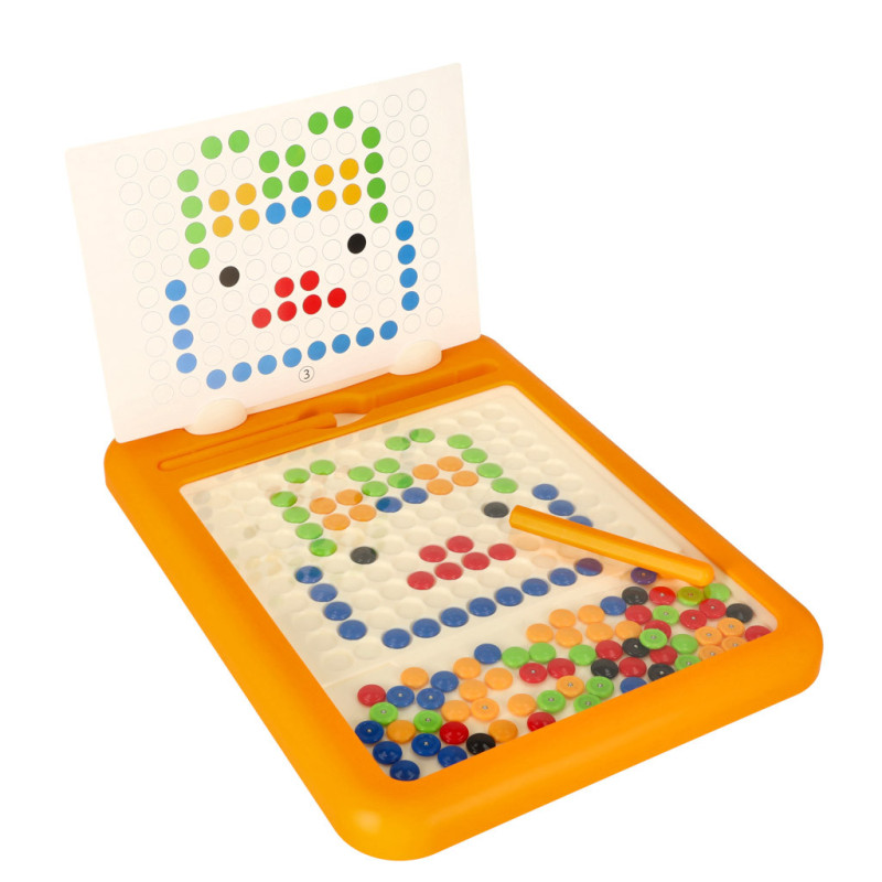Tabuľa je nielen zárukou úspešnej hry, ale aj výborným spôsobom, ako rozvíjať zručnosti dieťaťa. Pri usporadúvaní magnetických gombíkov bude dieťa rozvíjať svoju kreativitu, jemnú motoriku, koordináciu oko-ruka a koncentráciu.
