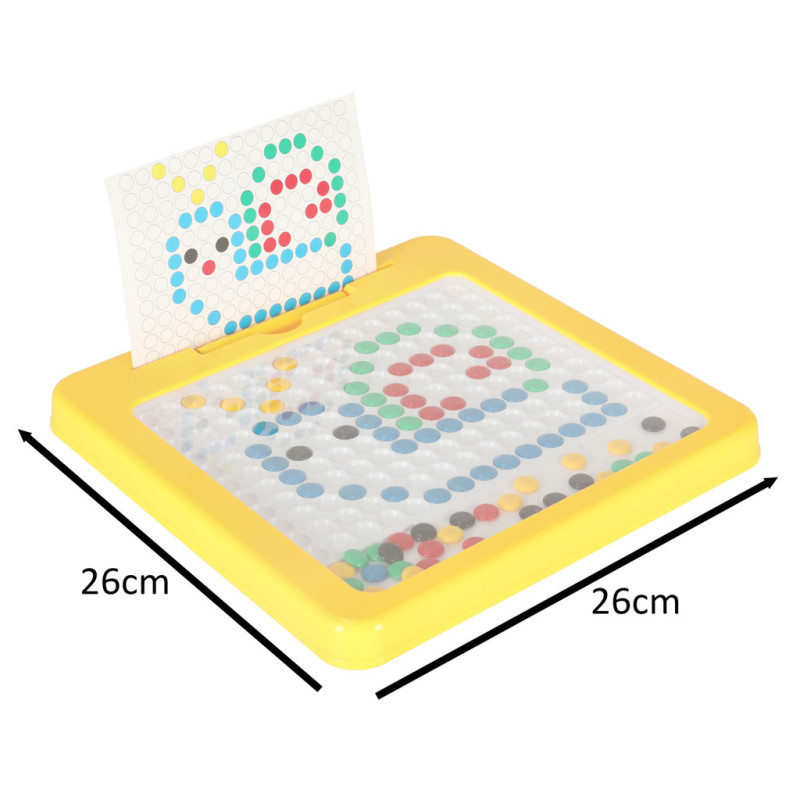 Magnetická kresliaca tabuľa ponúka nielen hodiny pútavej zábavy, ale aj rozvoj rôznych zručností dieťaťa! Tabuľa obsahuje farebné bodky s malými magnetmi, ktoré môže dieťa pomocou pera presúvať a vytvárať obrázky. V prípade potreby môže použiť aj priložené šablóny ako inšpiráciu.