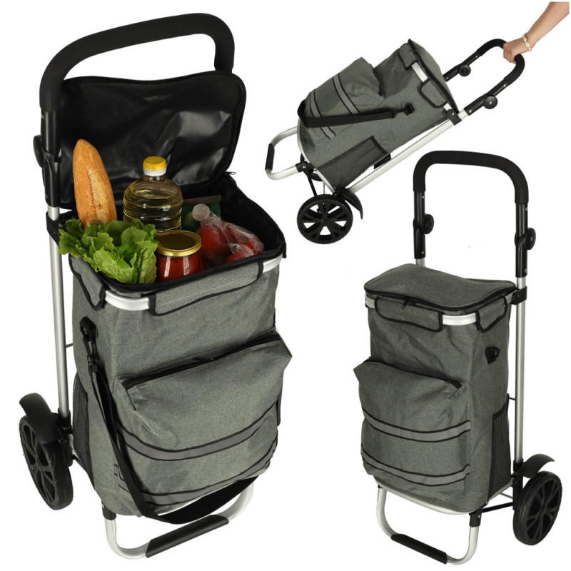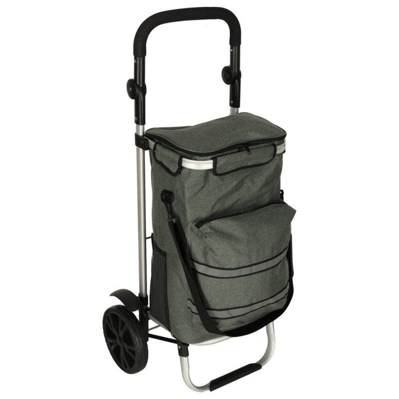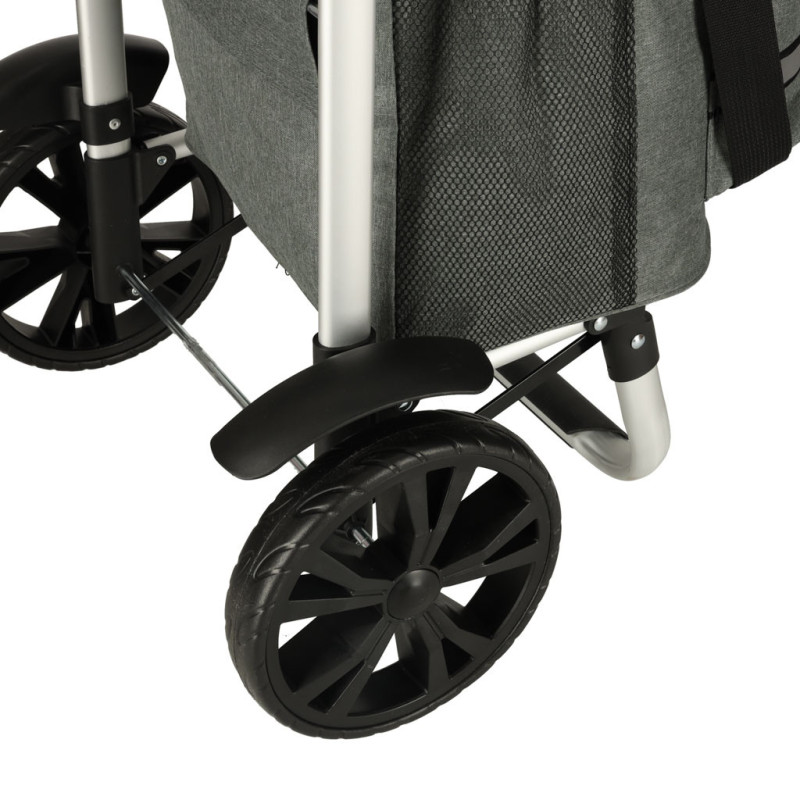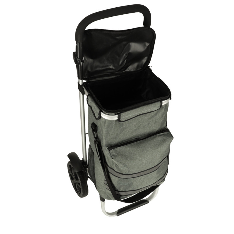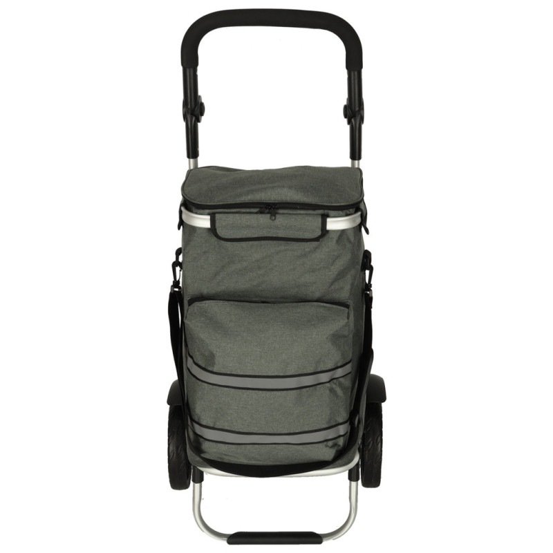 Výhodou vozíka je priestranná taška s množstvom vreciek vrátane veľkého termokapsy v prednej časti, ktorá nájde využitie pri preprave chladených výrobkov. Taška je vyrobená z odolného materiálu s nepremokavými vlastnosťami, takže bude určite užitočná počas celého roka.