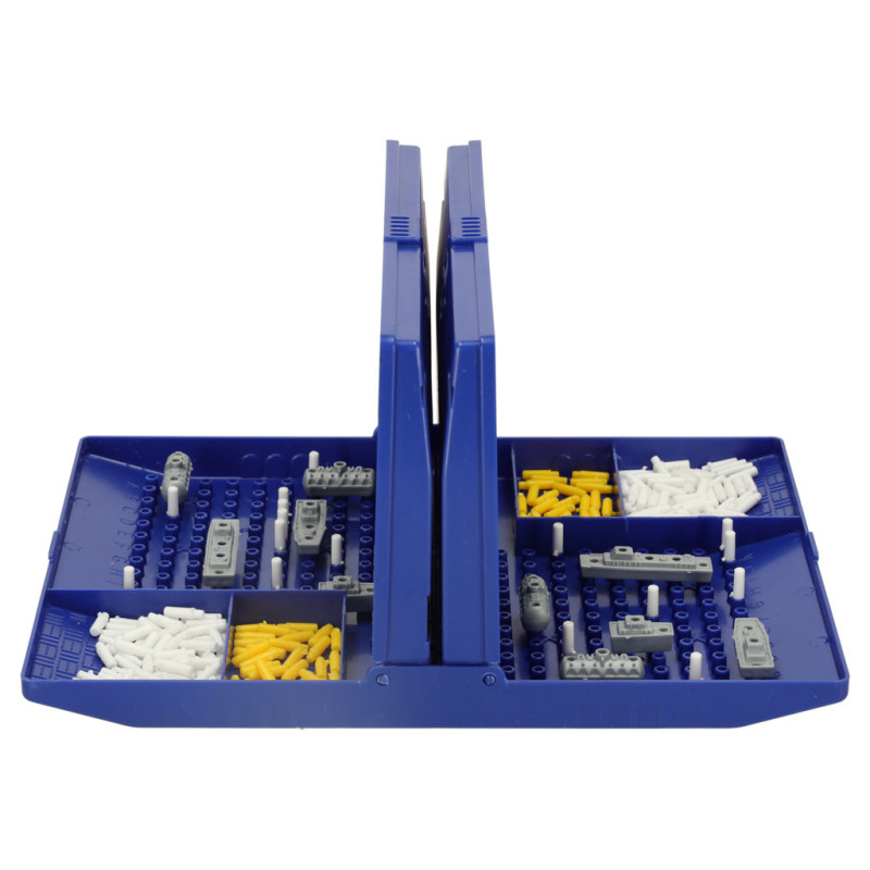 Plastový obal sa premení na dvojitú hraciu plochu, na ktorej hráči uskutočňujú svoje strategické hry. Na každého hráča pripadá 5 lodí, ktoré je potrebné dômyselne umiestniť. Cieľom hry je uhádnuť polohu súperových lodí a potopiť ich.