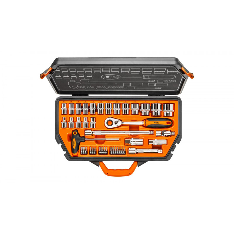 NEO Sada kľúčov 1/2 ' - 42 kusov vyrobených z vysoko kvalitnej chróm-vanádiovej ocele. Sada obsahuje račňu s odolným račňovým mechanizmom (48 zubov), širokú škálu nástavcov (veľkosť 8 až 32 mm), ...Получател :