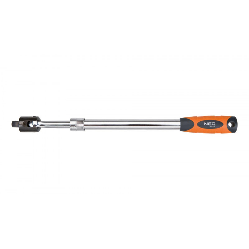 NEO Rukoväť s teleskopickým kĺbom 1/2 ' s rozsahom 470–620 mm. Produkt je vyrobený z odolnej chróm-vanádiovej ocele. Ergonomická rukoväť zvyšuje pohodlie pri práci. Kvalita nástroja potvrdená certifikátom TÜV a 25-ročnou zárukou od výrobcu. Značka NEO spĺňa očakávania profesionálov.