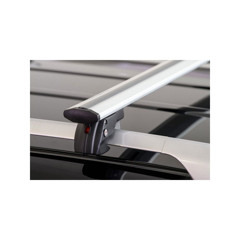 Hliníkové strešné tyče pre autá so štandardným zábradlím, vybavené systémom proti krádeži; rýchla a jednoduchá inštalácia.